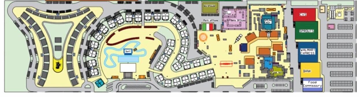 A World of everyday living, Filled with Restaurants, Shopping, Entertainment, Safety, Farmers Market, Golf Range, High Level Mini Golf, and Live Concert’s Event. built in 10 stages see above map.